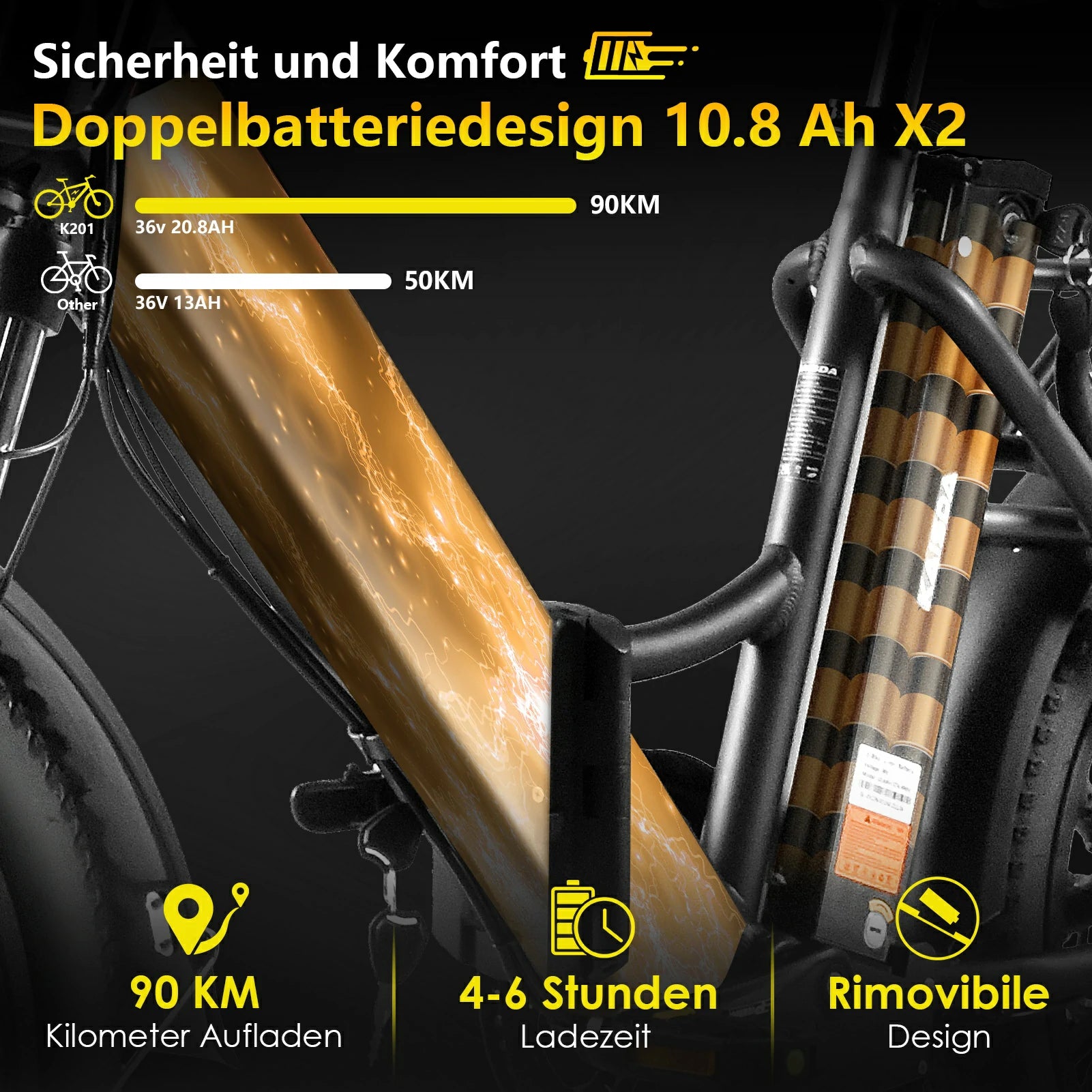 Good morning. I have to compliment the seller, the e-bike arrived in uk in 5 days. About two hours to remove it from the packaging and assemble it. The battery arrives charged at 3/4. I tried it and I am very satisfied, it's well-crafted in detail, the tires seem to hold the road well, the shock absorbers are very comfortable and it's easy to drive. It's my first e-bike and I can't make comparisons, but I find it very fast, it helps a lot uphill, almost feels like a scooter. Very satisfied with the price. Now I will try it to see the battery life and how it performs over time. If there are any updates, I will let you know. The set also includes a pump and a chain with a combination lock. I do not recommend the purchase, and I noticed that the seller is always available to respond. Happy shopping