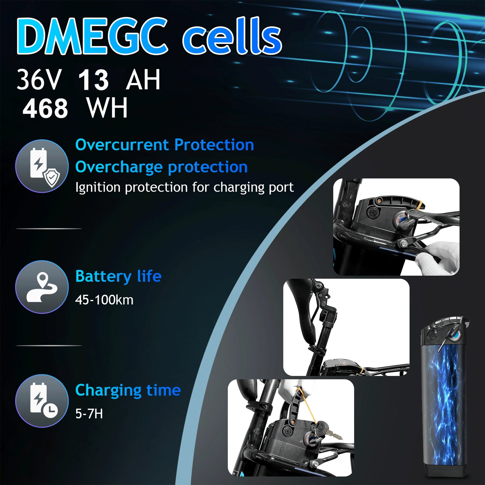 250W Motor | 36V 12.5Ah Battery | 25-28km/h Speed | 40-65km Range